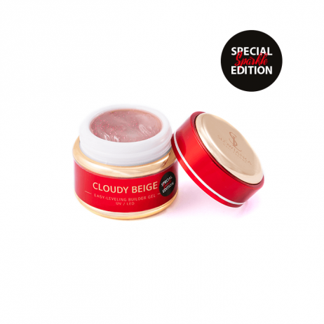 The special edition of the Cloudy Beige construction gel enriched with glitter particles will give the effect of delicate styling with a little gloss.